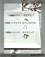 ①樹脂ピアス②ピアス③樹脂フックピアス④フックピアス⑤樹脂イヤリング⑥イヤリング