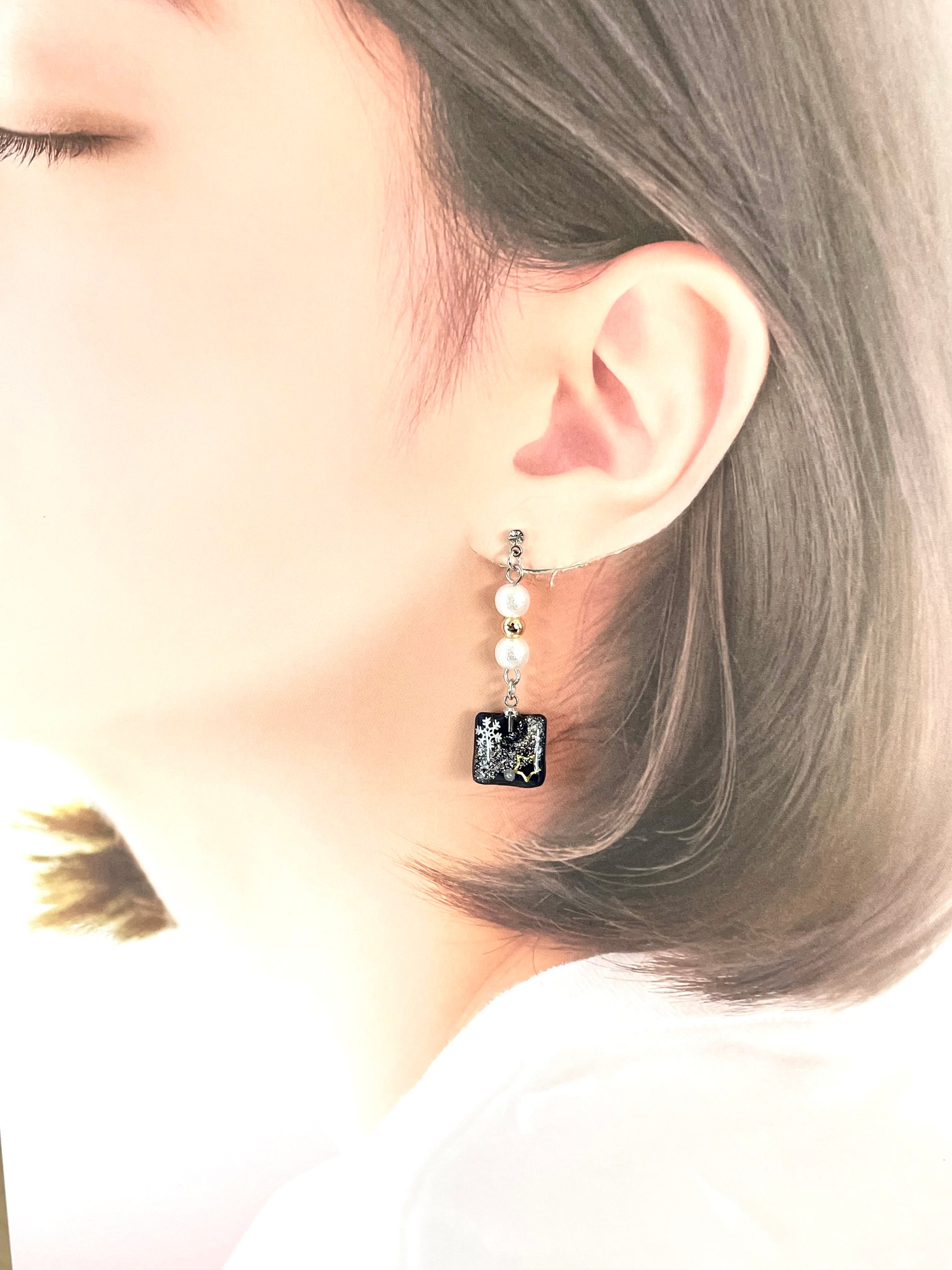 冬を詰め込んだ作品。雪の結晶のレジンは、この時期の贈り物としても素敵です。大切な人へのプレゼントにもぜひご検討ください。